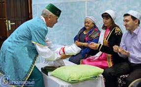 Бала туылғанда оған молда шақырылады, ол баланың құлағына зұлым рухтар мен оның атын шығаратын дұғаларды сыбырлап, арнайы рәсім жасайды. Қонақтар сыйлықтармен келеді, оларға мерекелік дастархан жайылады.