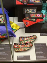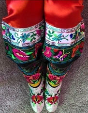 Дүнген әйелінің аяқ киімі әр түрлі және түрлі-түсті. Ұлттық киіммен бірге тігілген аяқ киім өте талғампаз көрінеді. Әйелдерге арналған матадан жасалған аяқ киім жібек және мақта маталарынан жасалған, дунген әйелдері қара барқыттан жасалған аяқ киім киеді. Олар өте ерекше болатын. Қалыңдықтардың жарқын аяқ киімдері өте әдемі. Ол қолмен гүлдер мен әшекейлердің шырынды түстерімен кестеленген. Мұндай аяқ киім үйлену көйлегінің жалғасы болып табылады, ол қолмен жасалады және дәстүрлі бастырмалармен қапталған.