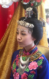 Фольклор қытайдікіне жақын. Жанрлар арасында- сиқырлы және тұрмыстық ертегілер (гужир); жалпы Қытай эпикалық сюжеттері («Үш патшалық» және т.б.) қайта түсіндірілген әңгімелер (фу); санщынзы шертпелі 3- ішекті аспабының сүйемелдеуімен орындалатын батырлық өлеңдер (дацуздар) («ма Да-жын» және т. б.). Әндер (щечузы) - лирикалық-эпикалық (ең танымал – «мың Чжу ню» - күйеуі Ұлы қытай қабырғасының құрылысында қайтыс болған жас әйелдің тағдыры туралы), лирикалық әйелдер (оның ішінде «Сүйікті Маву»), аңызға айналған батырлар туралы әндер, еңбек, сатиралық, әзіл-оспақ, тұрмыстық; ерлер мен әйелдердің жоқтаулары. Өлеңдердің мәтінінде айлардың атаулары күн күнтізбесімен байланысты табиғат, халықтық мерекелер сипаттамасы кездеседі. Жарастық негізі – пентатоника, жұп ырғақ басым. Аспаптық музыка әндерді, билерді сүйемелдейді, янгенің ән-би композицияларына енеді.