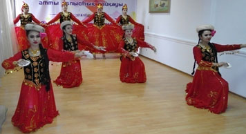 Шығыс Түркістанның ерекше буддалық мəдениеті би өнерінде де сақталған. «Мин үй» буддалық үңгір храмдарында өткізілген ғибадатханалық қойылымдар осы кезеңдегі ұйғыр би өнерінің дамуында маңызды рөл атқарды. Бұл жарқын театрландырылған қойылымдар, мұнда би мен пантомима мазмұнды білдірудің жəне сюжетті дамытудың негізгі құралдарының бірі болды. Ерлер де, əйелдер де аз-орындаушылардың көп бөлігі ғибадатхана билеріне қатысты. Əдетте, бұлар пластикалық техниканы жəне актерлік шеберлікті жақсы білетін арнайы дайындалған бишілер болатын. Дəстүрлі, канондық қимылдар мен би қимылдарының, символдық белгілердің көмегімен олар əн мен музыкалық мазмұнды бейнелейтін.