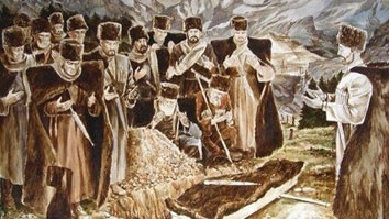 Ұрыста қаза тапқандар олар өлтірілген түрінде, жуылмай және кебінсіз жерленеді. Мұндай өлген адамның қабірінің үстіне жазуы бар қабірден басқа жалауы бар ұзын тірек қойылды. Мәйіттің денесін зиратқа ерлер апарады. Ауылдан шыққан әйелдер қайтып келіп, қайтыс болған адамды жоқтауды жалғастырды.